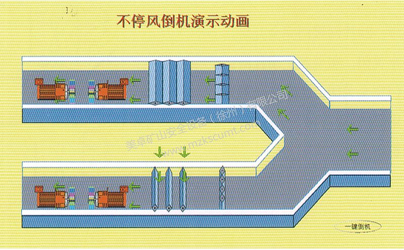 通風(fēng)機(jī)不停風(fēng)倒機(jī)系統(tǒng)通過先進(jìn)的遠(yuǎn)程監(jiān)測及控制系統(tǒng),邏輯控制快速開啟或關(guān)閉自密式旋葉風(fēng)門,實(shí)現(xiàn)通風(fēng)機(jī)的快速切換,使倒機(jī)過程對通風(fēng)機(jī)系統(tǒng)的影響由傳統(tǒng)的“系統(tǒng)停風(fēng)”縮短為“風(fēng)量波動”,故障狀態(tài)下的倒機(jī)時(shí)間明顯縮短,將原主扇通風(fēng)機(jī)倒機(jī)時(shí)間由現(xiàn)在的五至十分鐘縮短到一分鐘之內(nèi)。整個(gè)系統(tǒng)自動化程度高,可實(shí)現(xiàn)主扇系統(tǒng)無人值守,故障自動報(bào)警,故障自動倒機(jī)。