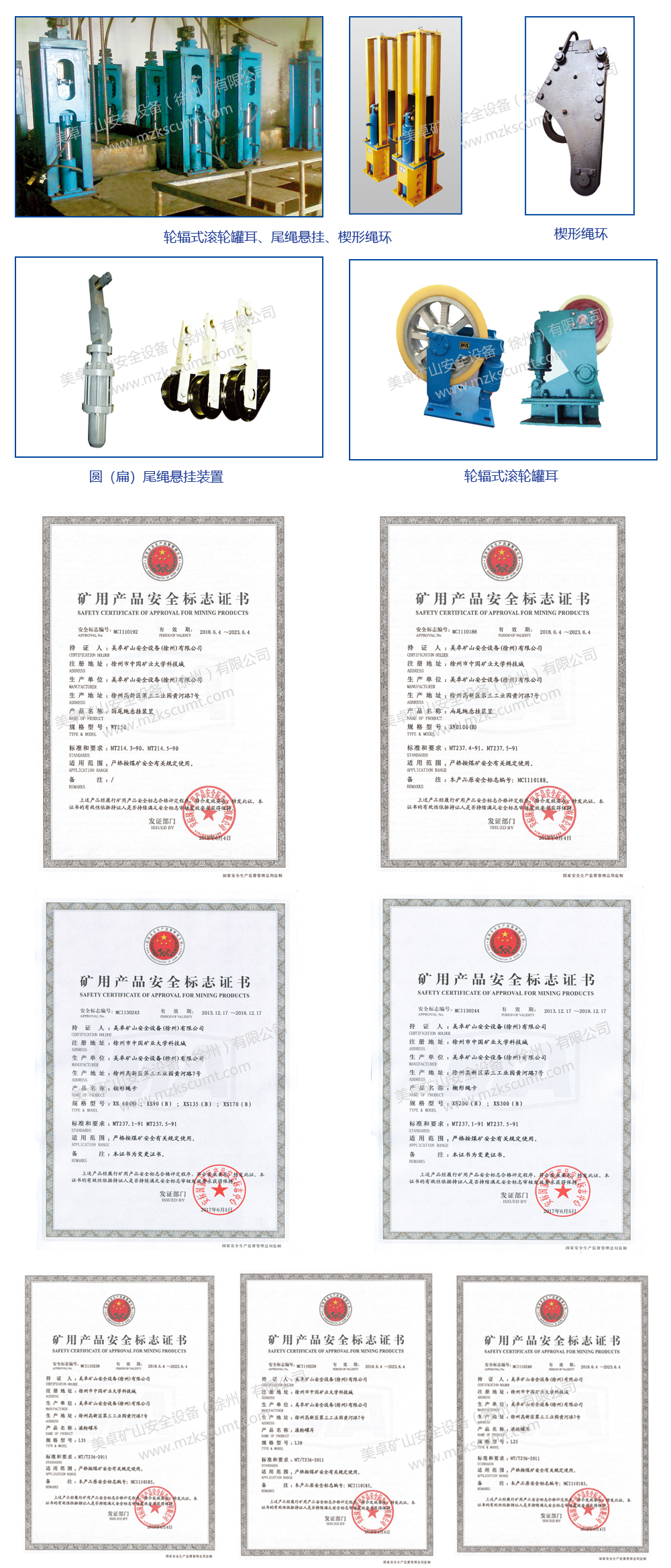 輪輻式滾輪罐耳、尾繩懸掛、楔形繩環(huán)