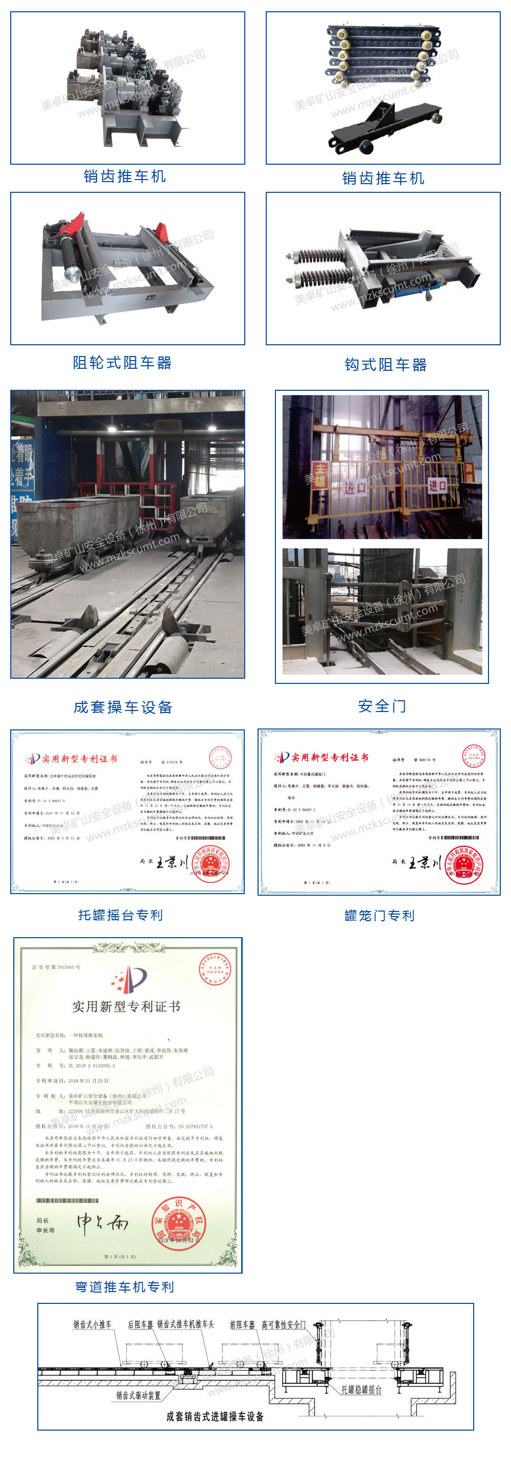 3、銷齒推車機(jī)傳動快速、平穩(wěn),可實(shí)現(xiàn)礦車置換、進(jìn)罐推車、回程拉車等運(yùn)輸作業(yè);