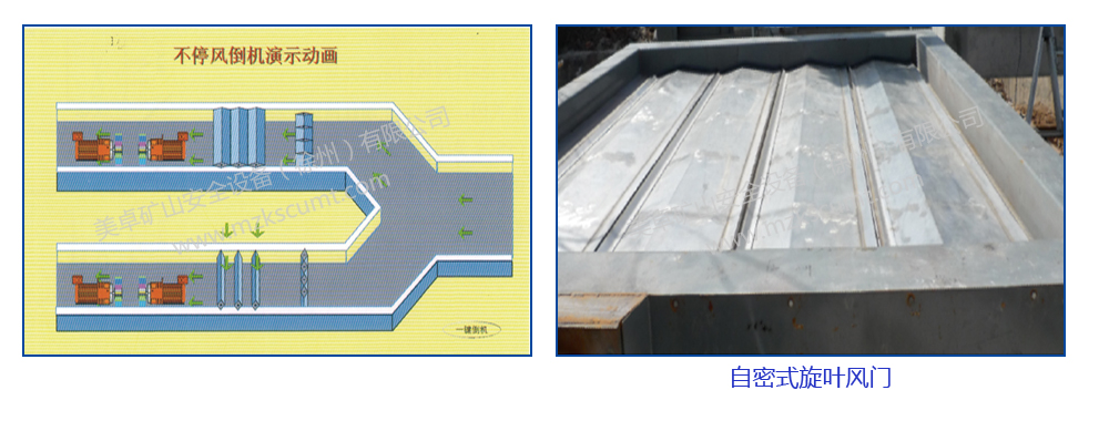 自密式旋葉風門用于配合倒機系統(tǒng)實現(xiàn)不停風倒機,其具有如下特點: